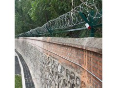 实体围墙AI人体引力周界入侵探测器:实体围墙(围栏)顶端增加AI人体引力探测器和滚刺网。或在原有滚刺网基础上增加 AI人体引力探测器。